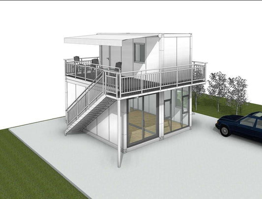 20FT Double Story Flat Pack House with Bathroom and Kitchen โ Terrace & Stairs